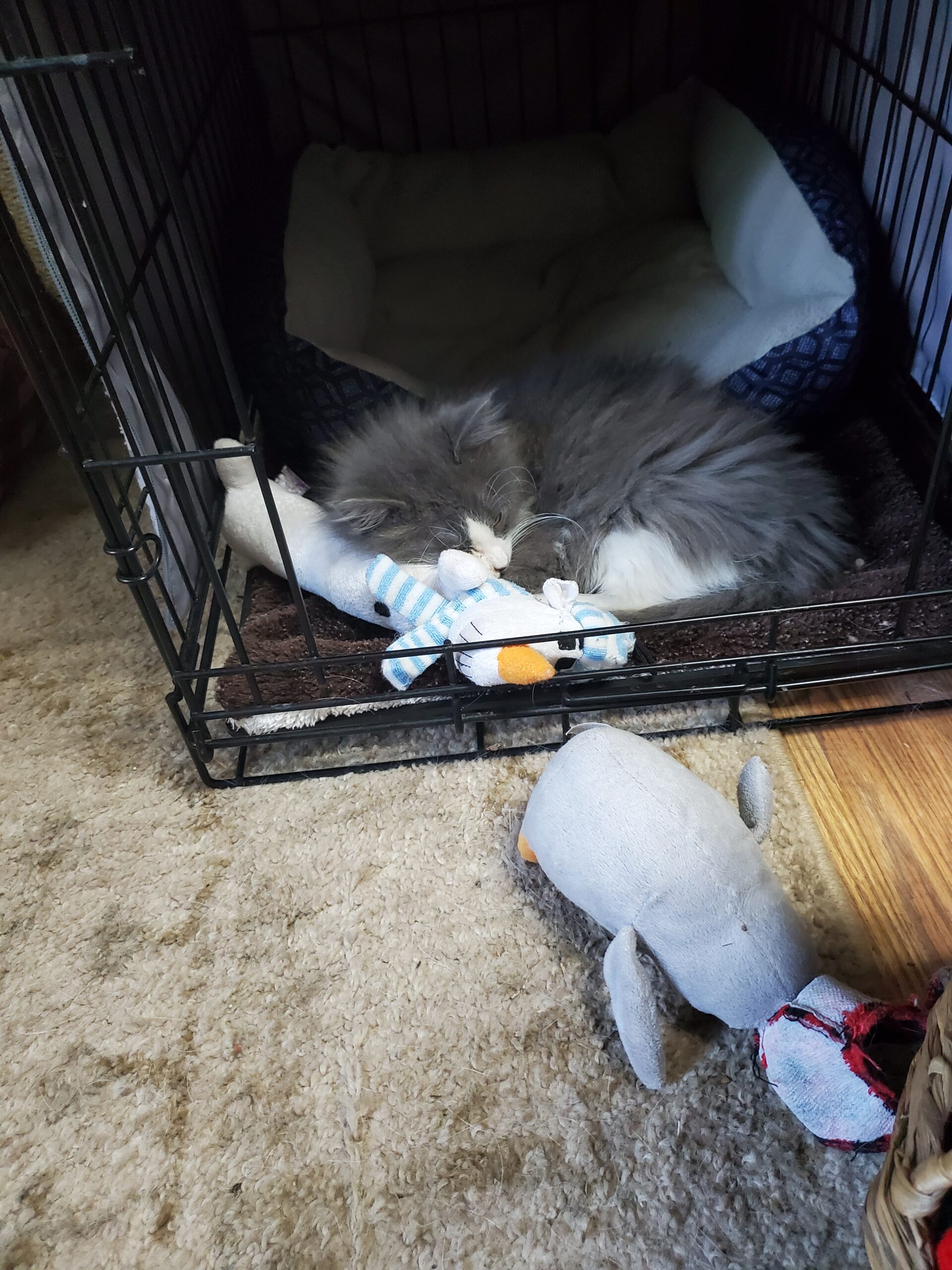 Remi was the last of his litter to find a home. He had a cold and no one was interested in him. It took several weeks of intensive care before he was well enough to consider rehoming. By that time, we were in love with him, so we kept him.